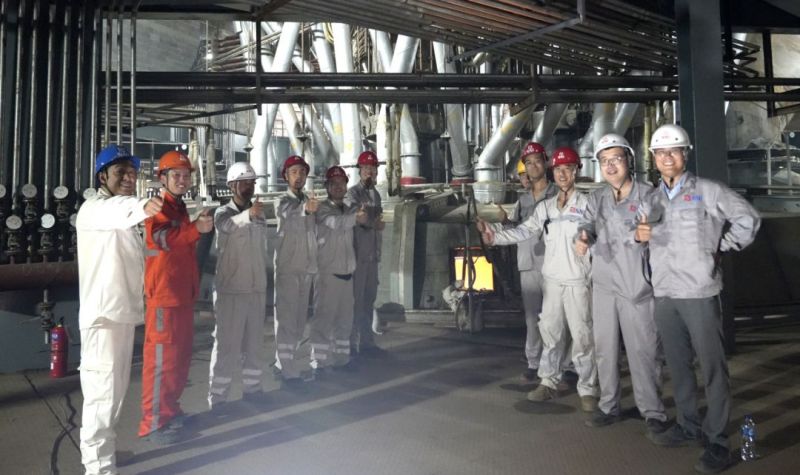 2022年8月,項目進入最后的沖刺階段。作為項目建設負責人,劉寅更是駐守到一線,在工地、車間現場,帶領設備安裝管理團隊,專攻調試期間的現場突發問題,實行“24小時現場排班制”,一刻不漏盯現場、盯設備、盯產線。8月份的印尼正值高溫高熱季節,劉寅的身先士卒也影響了所有項目建設、調試人員,最終大家團結一心,奮力沖刺,最終打贏了這場“硬仗”。回憶這段經歷,劉寅至今印象深刻,他幽默地說道:“大家24小時都在現場,每天一身臭汗,全部變成了‘油膩男’,但每個人眼神中的堅毅讓我相信項目一定能成。那是一段難忘的經歷,很榮幸與他們在同一條’戰壕‘里作戰,一起為勝利而戰!”
