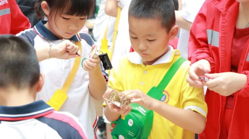 小朋友們時而認真聽著講解,展現著自己的好奇和對知識的渴望;時而舉手提問,尤其是提到日常生活中與新能源息息相關的科技產品時,一下子問題就多起來,“三元前驅體是哪三元?我的手表里面電池都有哪有材料?新能源汽車里面的電池和手機的電池有什么區別……”