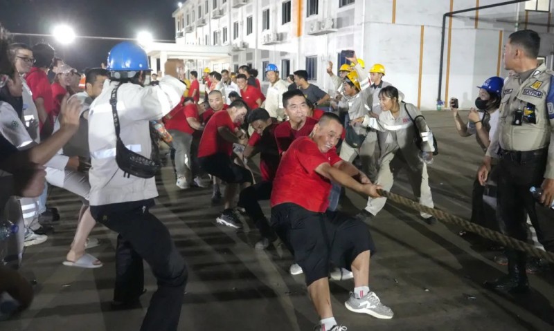 在基地的生活廣場上,陣陣吶喊加油聲響徹天際,“首屆中印尼員工拔河比賽”正進行得熱火朝天。每一次奮力的拉扯都凝聚著團隊的力量與信念,在一聲聲口號里,中印尼員工擰成一股繩,咬緊牙關,全力以赴,不僅展現了不屈不撓的精神風貌,更在每一次勝利與失敗中體會到了團隊協作的真諦和勇于拼搏、不斷前行的精神力量。