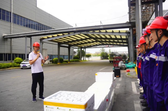 與此同時,寧鄉產業基地的清涼關懷同樣“熱烈”。自氣溫攀升以來,寧鄉產業基地持續為一線員工配送綠豆沙等飲品?;乜偨浝矶句摰阮I導深入車間慰問,關切詢問職工高溫下的生產生活?;谽HS部還現場分享了“夏季中暑預防與急救”的知識,強化安全生產培訓。