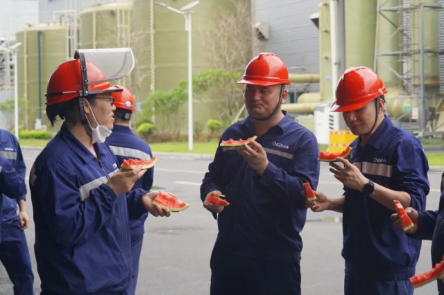 此外,欽州產業基地還通過食堂動態供應盛夏“七彩”甜品、班組會議宣貫防護舉措、黨員先鋒防暑知識宣傳等方式打好防暑“組合拳”,多措并舉戰高溫,讓一線員工舒心工作、平安度夏。