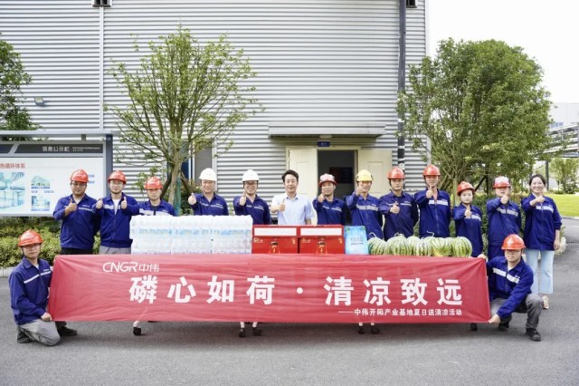 開陽產業基地以“磷心如荷,清涼致遠”為主題開展送清涼活動?;顒佑苫乜偨浝碇韯俨艓ш牐瑸楦鲝S區及各部門員工送上西瓜、涼茶、鹽汽水及清涼包等防暑物資?;顒又校蚋邷叵聢允貚徫坏膯T工表達問候,叮囑大家務必樹立安全意識、勞逸結合、預防中暑。