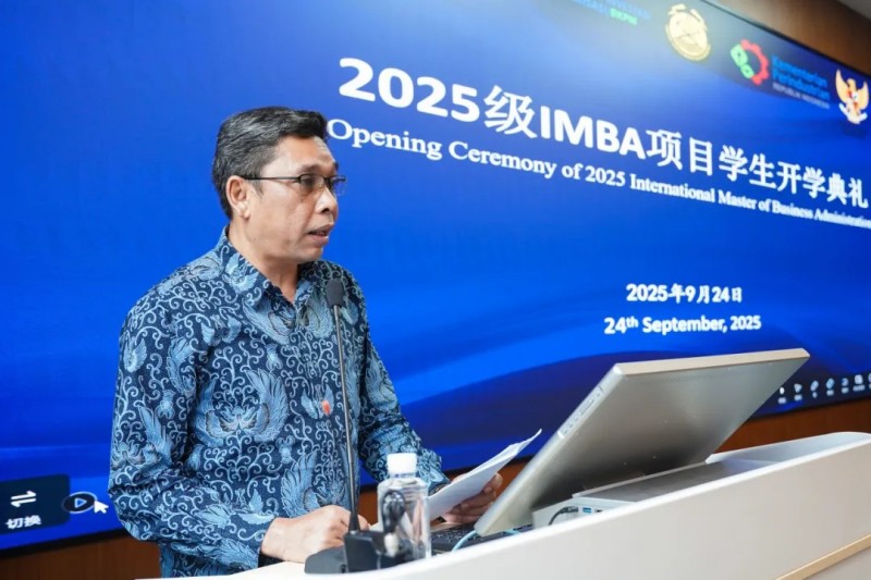 儀式上,湖南大學(xué)副校長(zhǎng)姜潮致開(kāi)場(chǎng)詞,他對(duì)IMBA項(xiàng)目的順利啟動(dòng)表示祝賀,向印尼各部委及中偉股份的信任與支持表示感謝。姜潮表示,為保障項(xiàng)目高質(zhì)量實(shí)施,學(xué)校精心配置了強(qiáng)大的師資力量,打造全英文的授課環(huán)境、豐富的校企聯(lián)動(dòng),希望IMBA班學(xué)生們學(xué)有所思、學(xué)有所獲,在湖南大學(xué)學(xué)習(xí)成長(zhǎng),成為“一帶一路”中印尼溝通交流的橋梁。