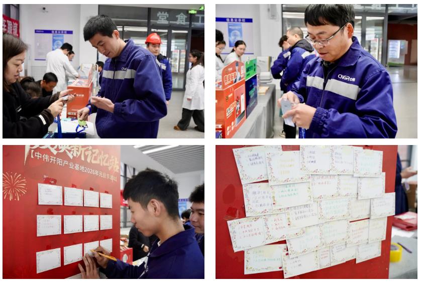 工牌煥新服務站同樣人氣不減,這里為員工更換全新工牌卡套及掛脖繩,助力大家以更清爽的形象,迎接新一年的工作與挑戰。而作為整場活動的“回憶擔當”——年度煥新記憶站,更是掀起了一波分享熱潮,員工們紛紛提筆,認真寫下2025年廠區的三個升級變化點,在細數基地發展點滴、分享收獲喜悅的同時,領取2026年中偉定制臺歷,將新年的美好期許與珍貴記憶一同珍藏。