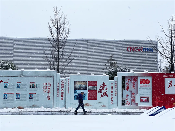 一排排的廠房在銀裝素裹的包裝下