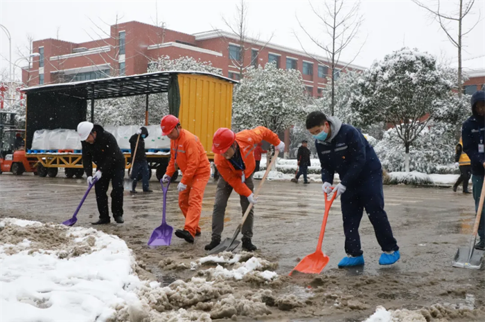12月26日下午2點,西部產業基地道路積雪結冰嚴重,EHS部發出路面積雪厚度15厘米的紅色預警。為清理積雪、方便員工出行,公司第一時間發布《掃雪除冰倡議書》,立刻得到全體干部員工的積極響應。