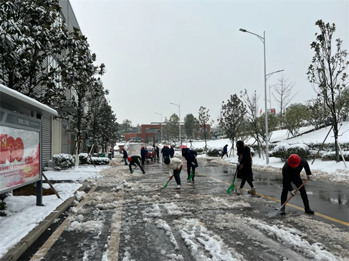 西部產業基地領導班子率先垂范,基地總經理鄧光明,常務副總經理張朝華以及公司各分管領導紛紛加入掃雪隊伍,充分發揮引領作用。志愿者們熱火朝天地參與到行動中,一時間,掃雪隊伍成了銀裝素裹下產業基地的一道美麗風景線。