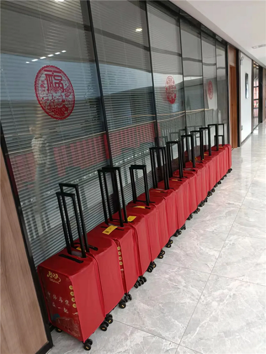 人手一份的紅色大行李箱