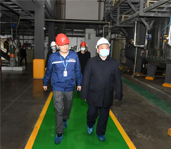 林冠一行實地走訪了南部產業基地,通過聽取介紹和交流考察等方式,詳細了解了南部產業基地項目整體規模、建成產值、市場占比、原材料來源、產品研發、人員規模及項目建設進展等情況。在三元一車間,林冠仔細查看了車間建設情況,聽取了胡培紅對車間工程建設進度等匯報后,充分肯定了建設成效,并就項目建設推進中遇到的問題作出精細化指導,強調要堅持“政策為大、項目為王、環境為本、創新為要”。