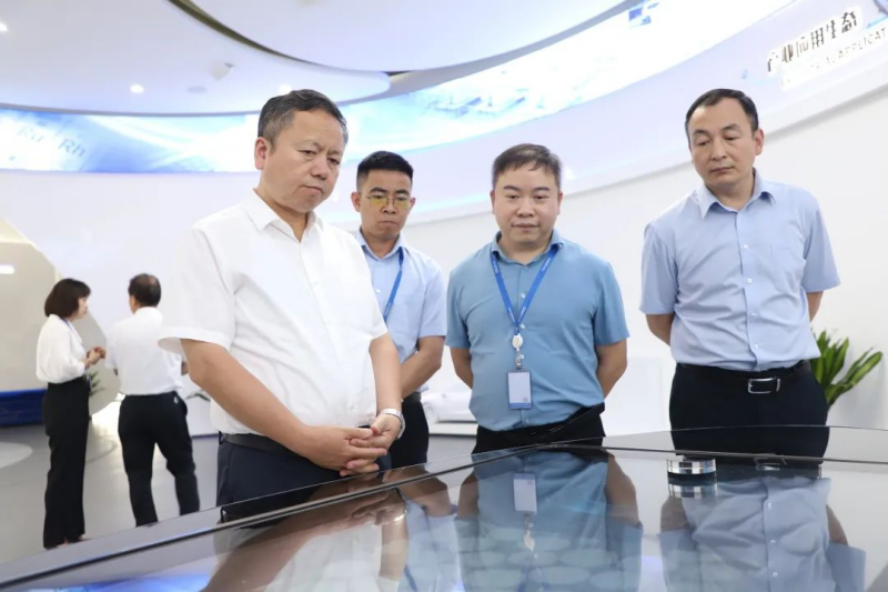 儀式結束后,向虹翔一行參觀了中偉科技館,訚碩介紹:“中偉以高鎳低鈷全系列三元前驅體、高電壓四氧化三鈷、綜合循環回收利用、原材料冶煉、材料制造裝備為主要研發方向,同時積極布局磷鐵系、錳系以及鈉系技術路線,提高多樣化、定制化、快速開發與量產的技術服務能力及產業化應用能力,將產業鏈做全做強,竭力打造更具競爭力的新能源鋰電產業生態?!蓖ㄟ^聽取詳細的介紹,向虹翔對公司的生產經營、產品研發、技術創新等進行了全面了解。
